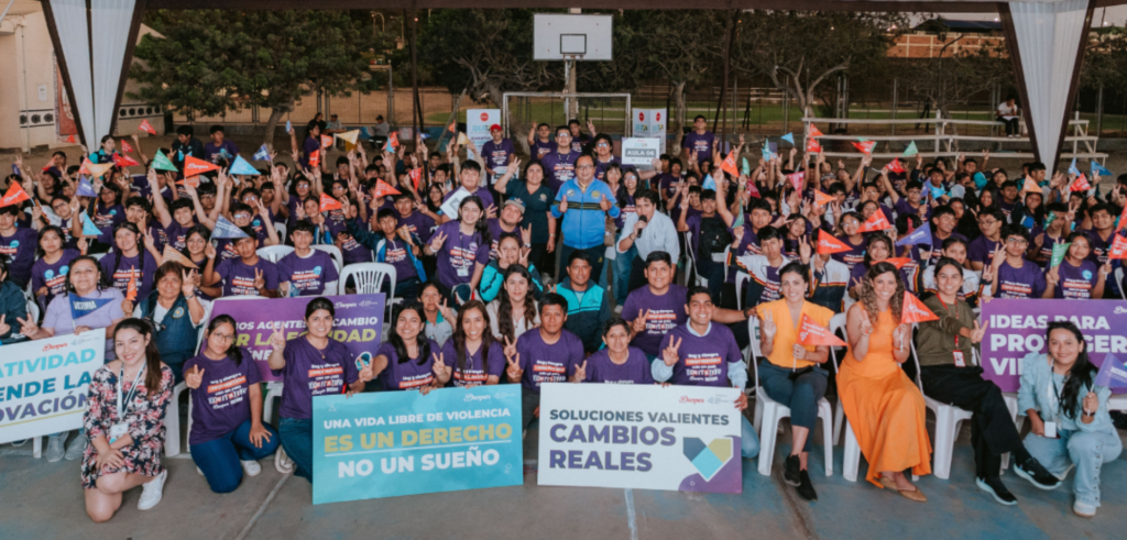 Jóvenes de cuatro colegios de Trujillo participaron en Ideatón, donde diseñaron ideas innovadoras para prevenir la violencia de género en sus comunidades.